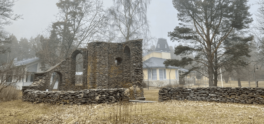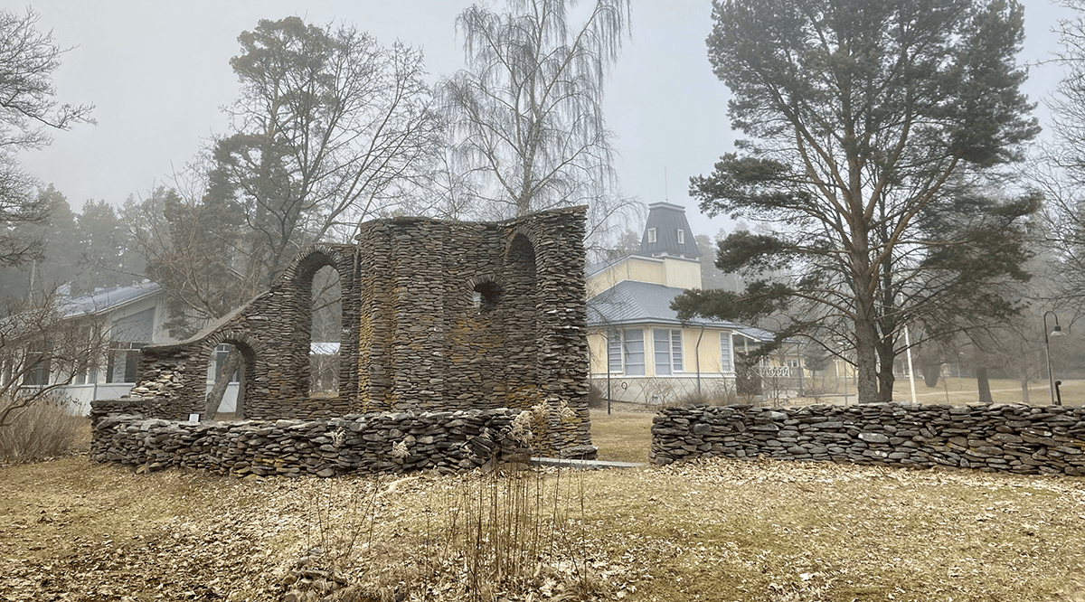 Toinen luonnonkivistä tehty, linnanraunioita muistuttava erikoisuus oli kylpylähuoneen ja puutarhan välisellä tasaisella alueella, ns. ”pölkkyplaanilla”, jonne alkuun paikkaa raivatessa oli jätetty isot puunrungot ja juurakot. Kun Junneliuksen tuttavia, nuoria ylioppilaita vietti täällä kesää, he rakensivat nämä muurit kuin muistoksi ja kiitokseksi huvilan isännälle.