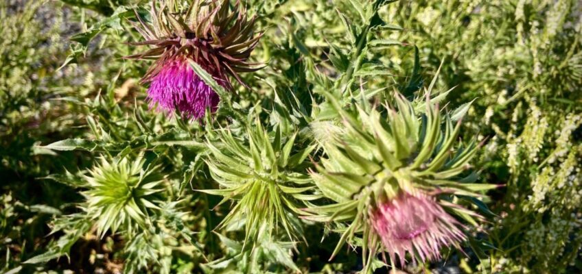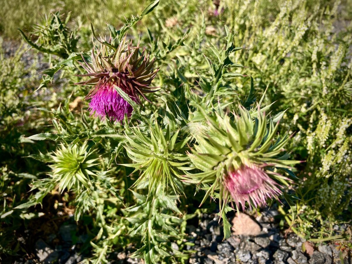 Tyypillisimpiä Reposaaren painolastikasveja ovat nuokkukarhiainen, isomesikkä, ketotyräruoho, rohtorasti, jaakonvillakko, sirppi- ja nurmimailanen sekä valkomesikkä. Nuokkukarhiainen on näyttävä, piikkinen kasvi. Sen lukuisat punaiset, joskus myös valkoiset tai vaaleanpunaiset kukkamykeröt nuokkuvat jo kukkavaiheessa. Nuokkukarhiainen on kaksivuotinen laji, jonka kasvupaikat vaihtelevat vuodesta toiseen. Lajin säilyminen Reposaarella on ensiarvoisen tärkeää, sillä tätä erittäin uhanalaista lajia ei enää tavata muualla maassamme. Lajin säilymistä edistää nk. hallittu hoitamattomuus.
